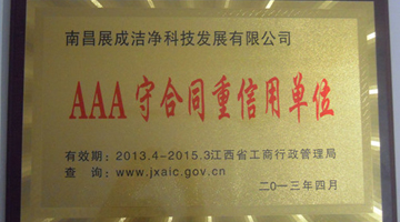 依照《江西省守合同重信用認定管理暫行辦法》,日前,江西省工商行政管理局對全省企業開展調查、評選,結合各企業納稅、信貸、環境保護、安全生產、勞動用工、民工工資發放、訴訟等方面的情況,并分別征求稅務、銀行等有關單位的意見,認定南昌展成為2012年“江西省守合同重信用AAA單位”。這也是繼入選2010年“南昌市守合同重信用企業”后,南昌展成在“守合同重信用”領域獲得的又一項榮譽。